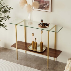 ミッドセンチュリーコンソールテーブル/クリアガラス×ウォルナッツ