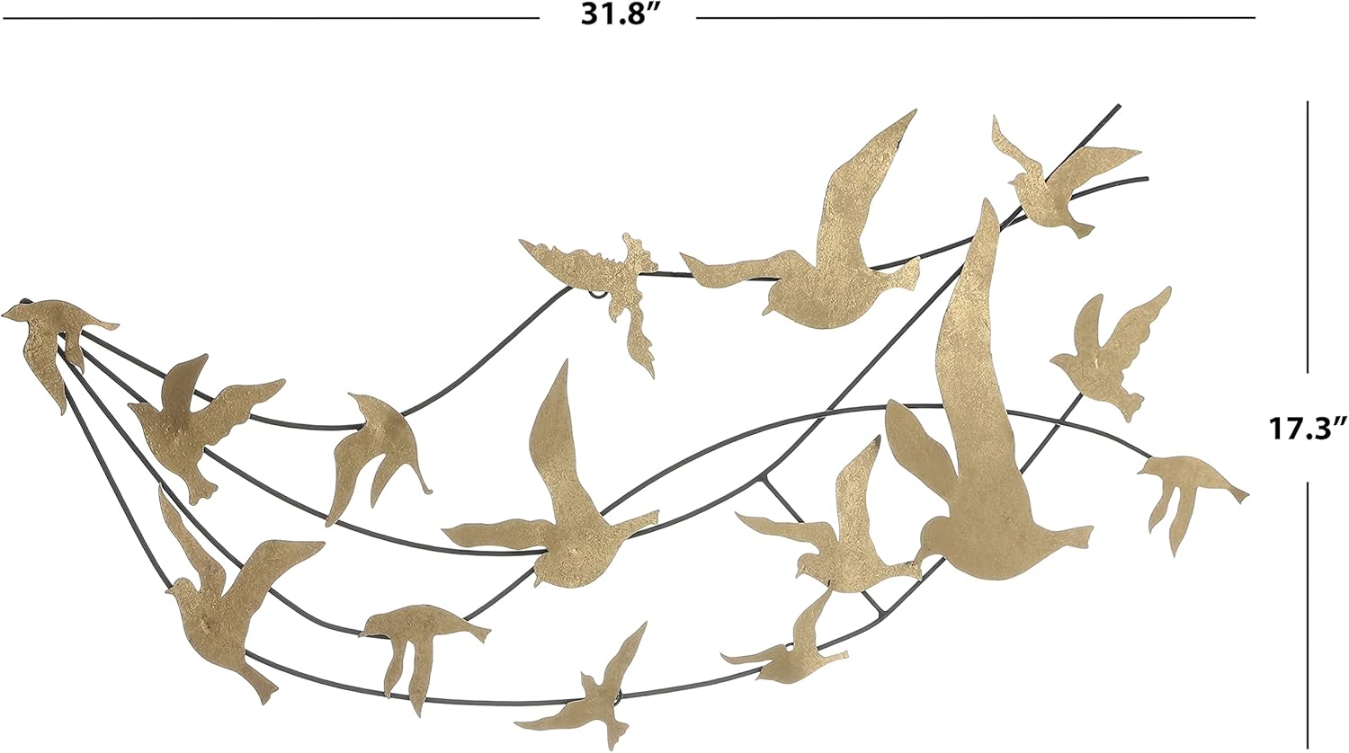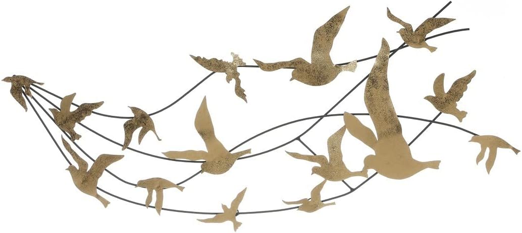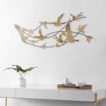 金色の小鳥が舞うバートメタルウォールアート壁掛けオブジェ