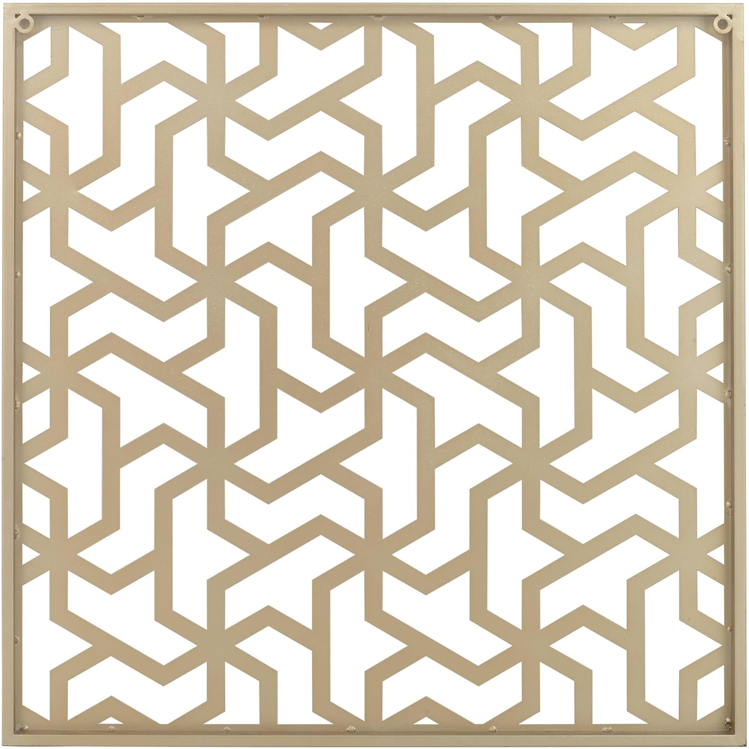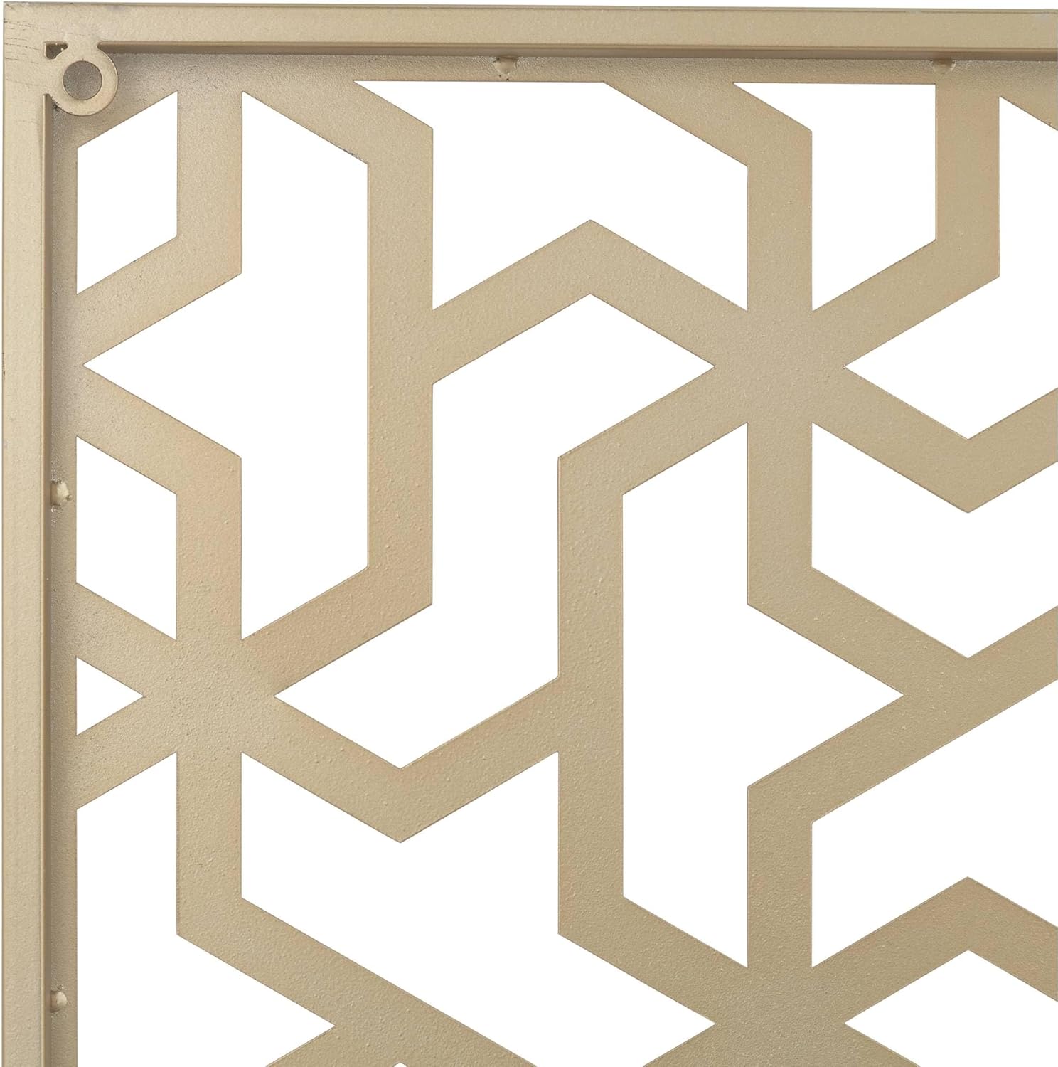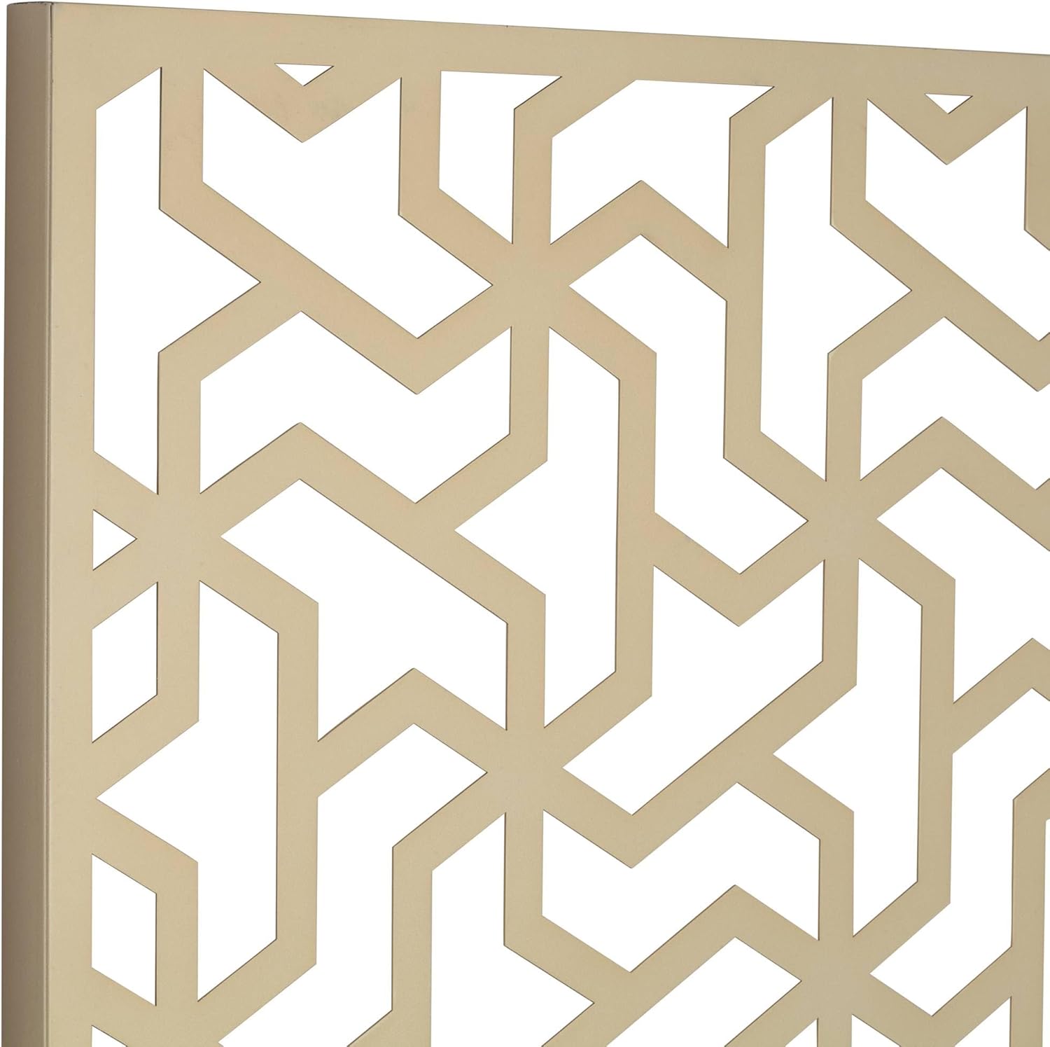 Dahlia Studiosによる現代的なパズルデザインのレーザーカットウォールアートです。光沢のあるゴールド仕上げのメタル構造が空間に上質な輝きを添えます。縦向き専用で、背面にはキーホール式ハンガーが付いており、簡単に壁掛けが可能です。屋内インテリアとしてお楽しみください。