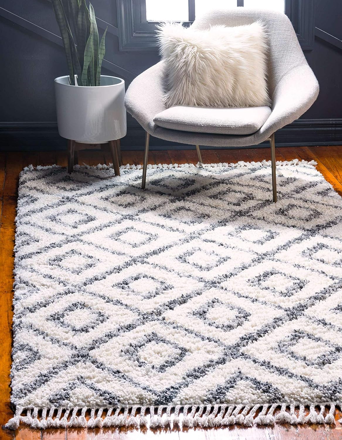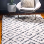 シャギーラグ モロッカン柄 ふわふわ厚手ラグIvory/Gray