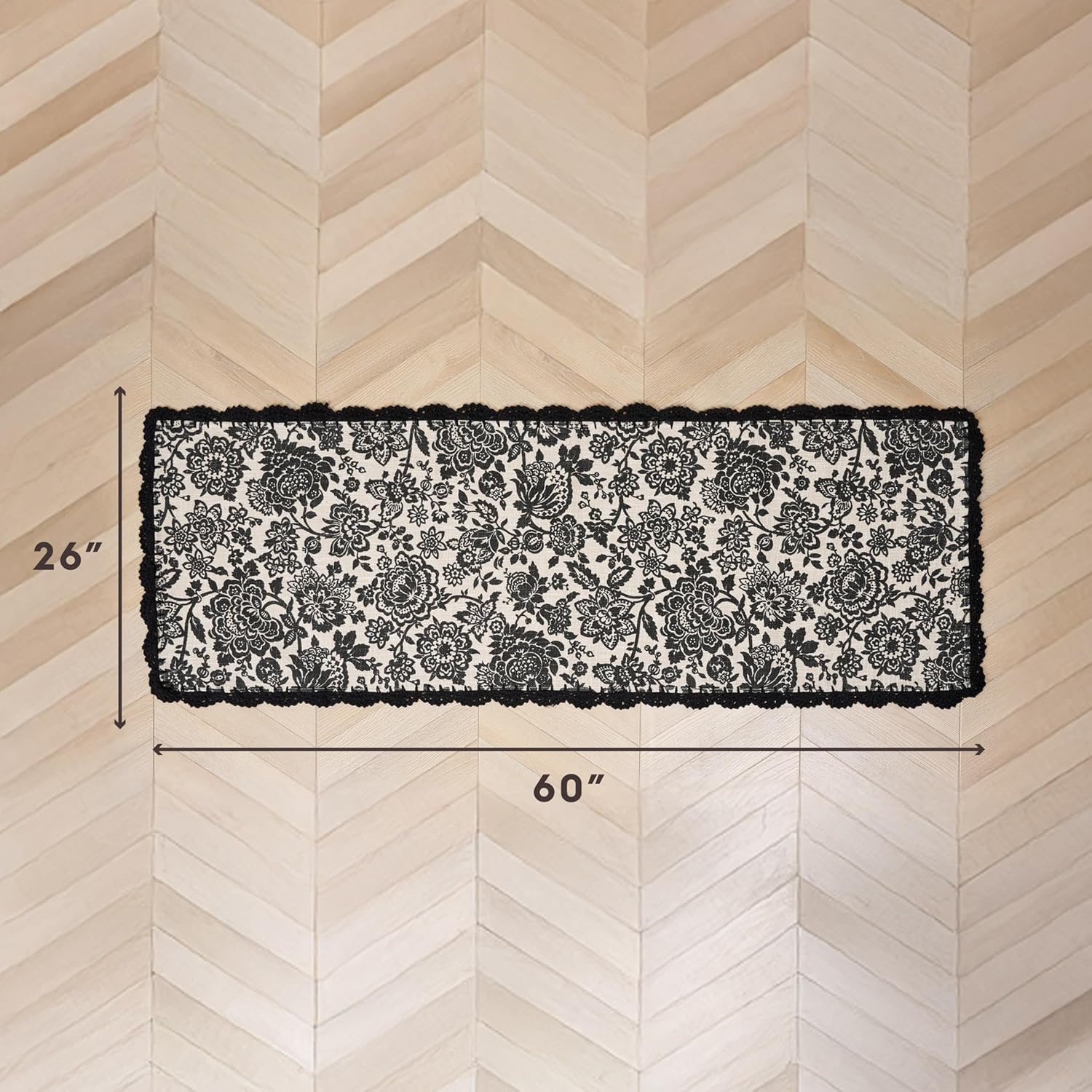 Laura Ashley(ローラ アシュレイ)の上品な花柄とコットン100%の柔らかさが魅力のランナーマットです。端にはクロシェ(かぎ針編み)のレースが施され、ヴィンテージ感のある優雅な雰囲気に仕上がっています。