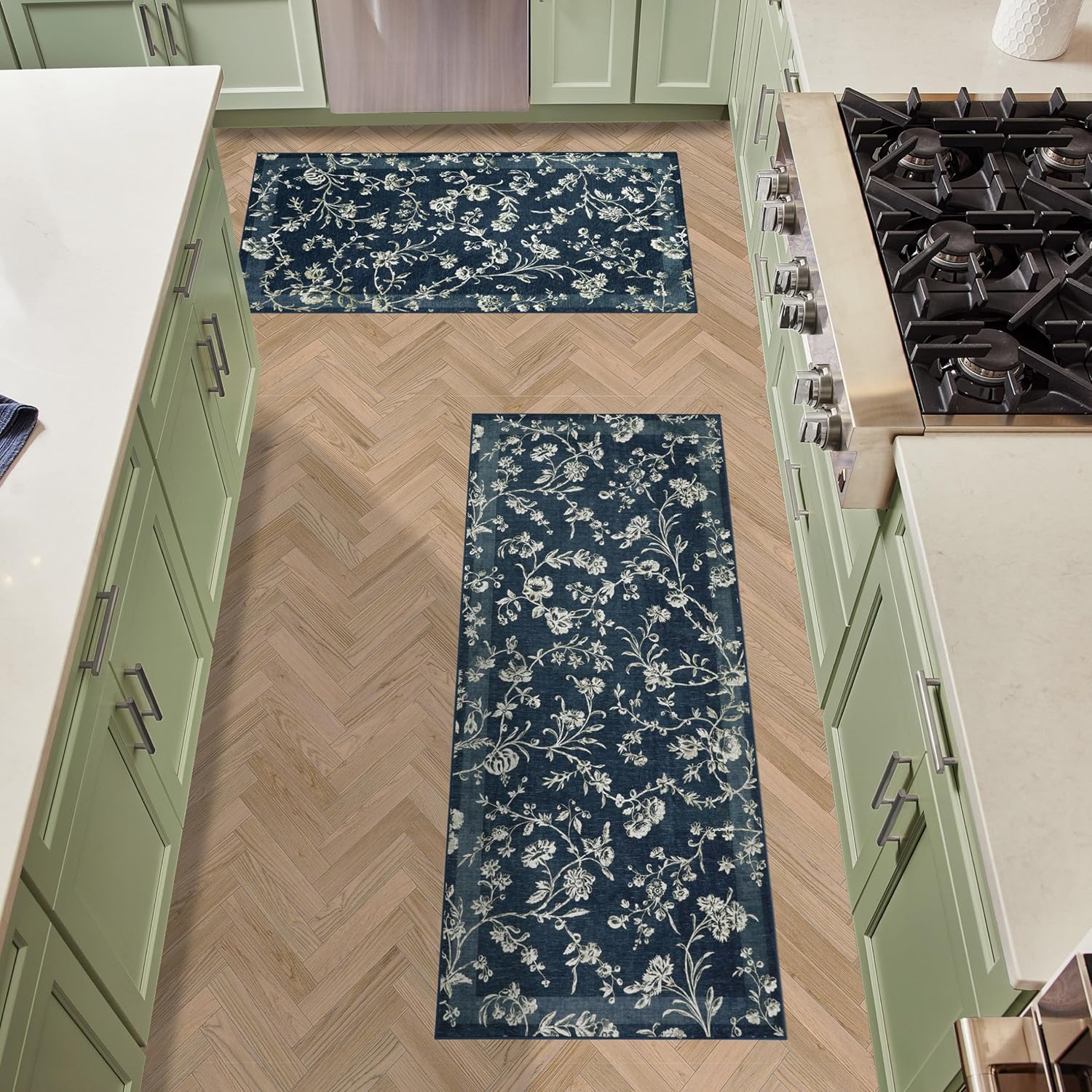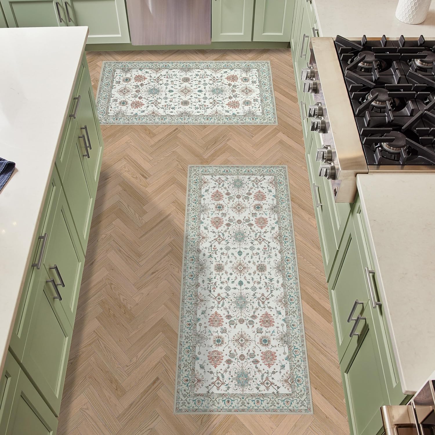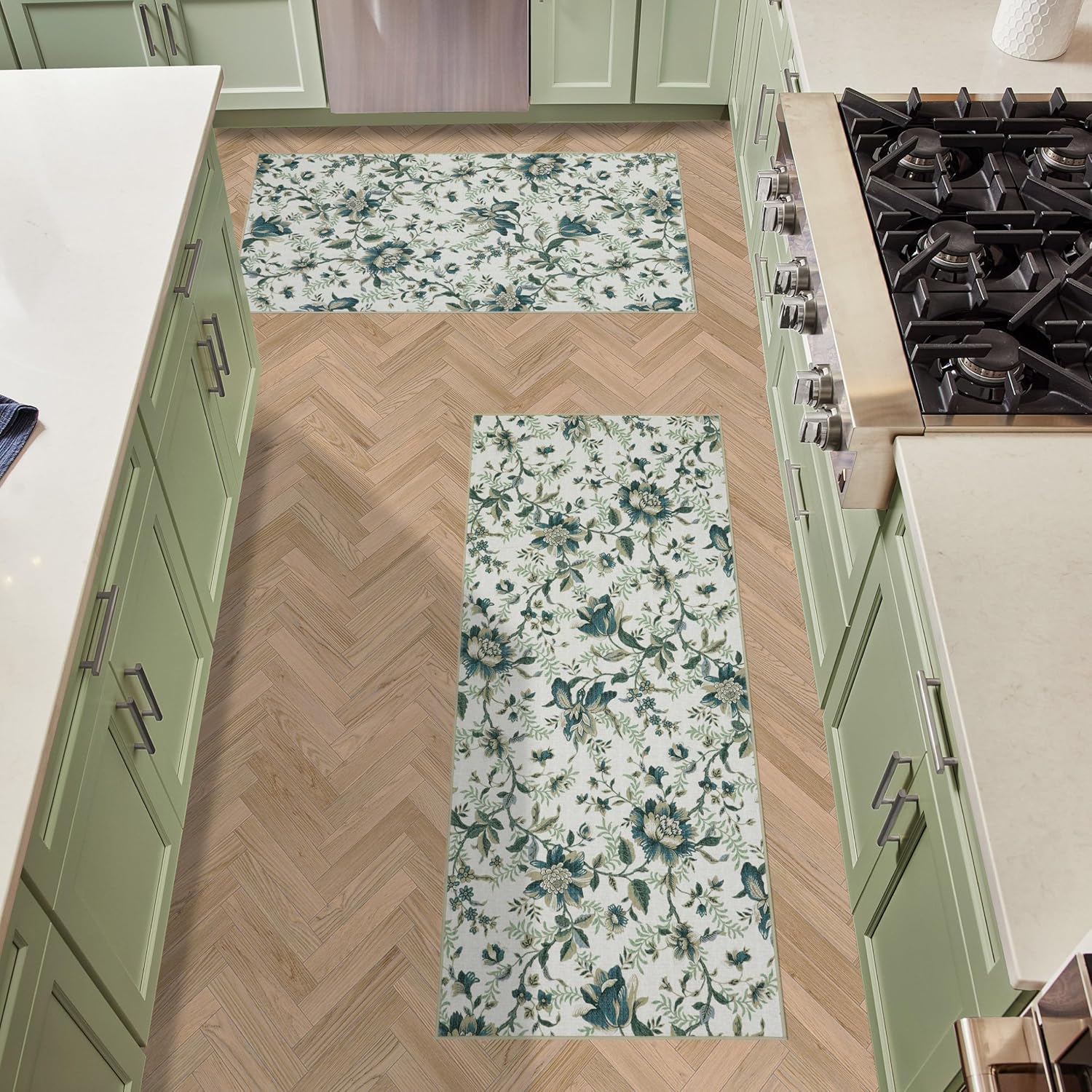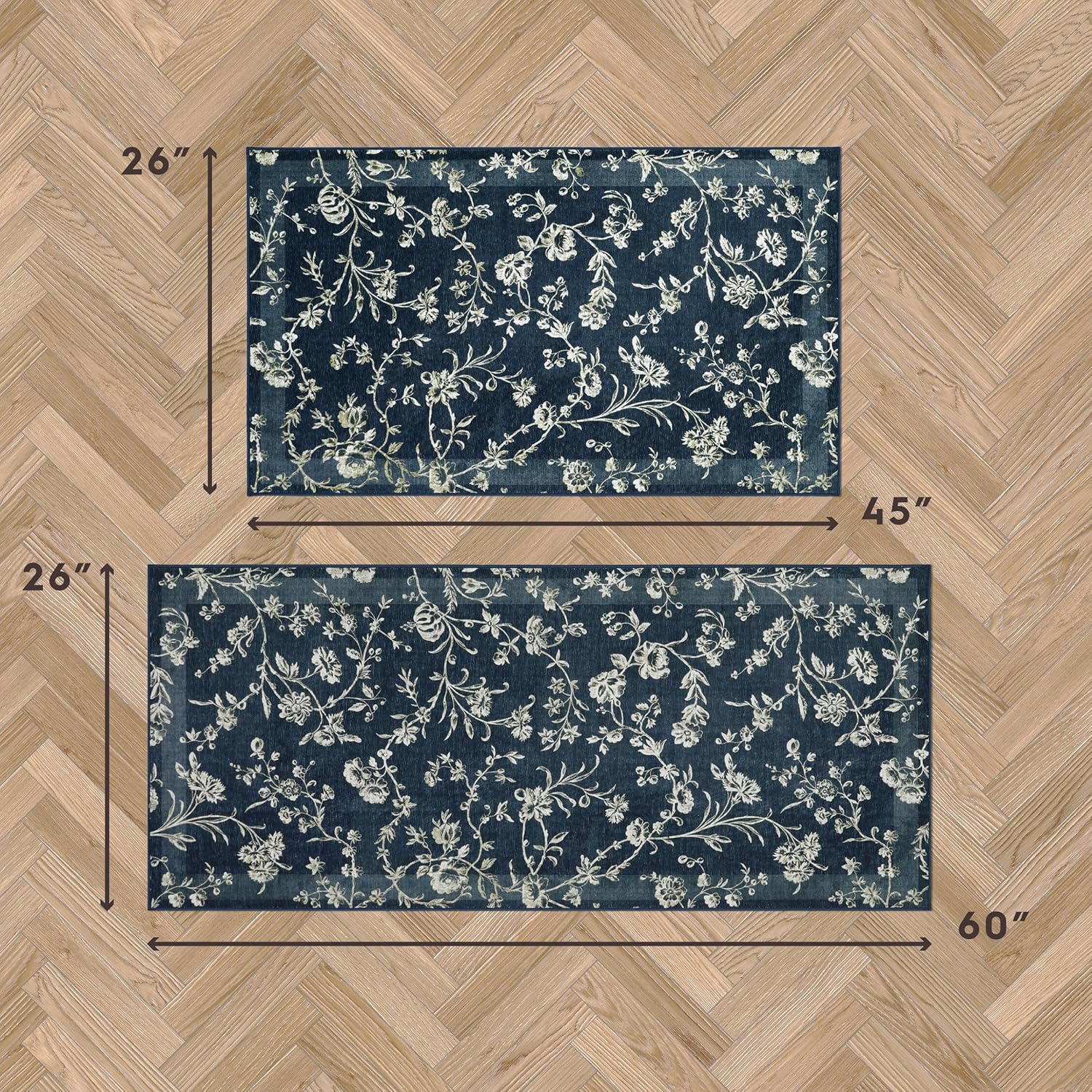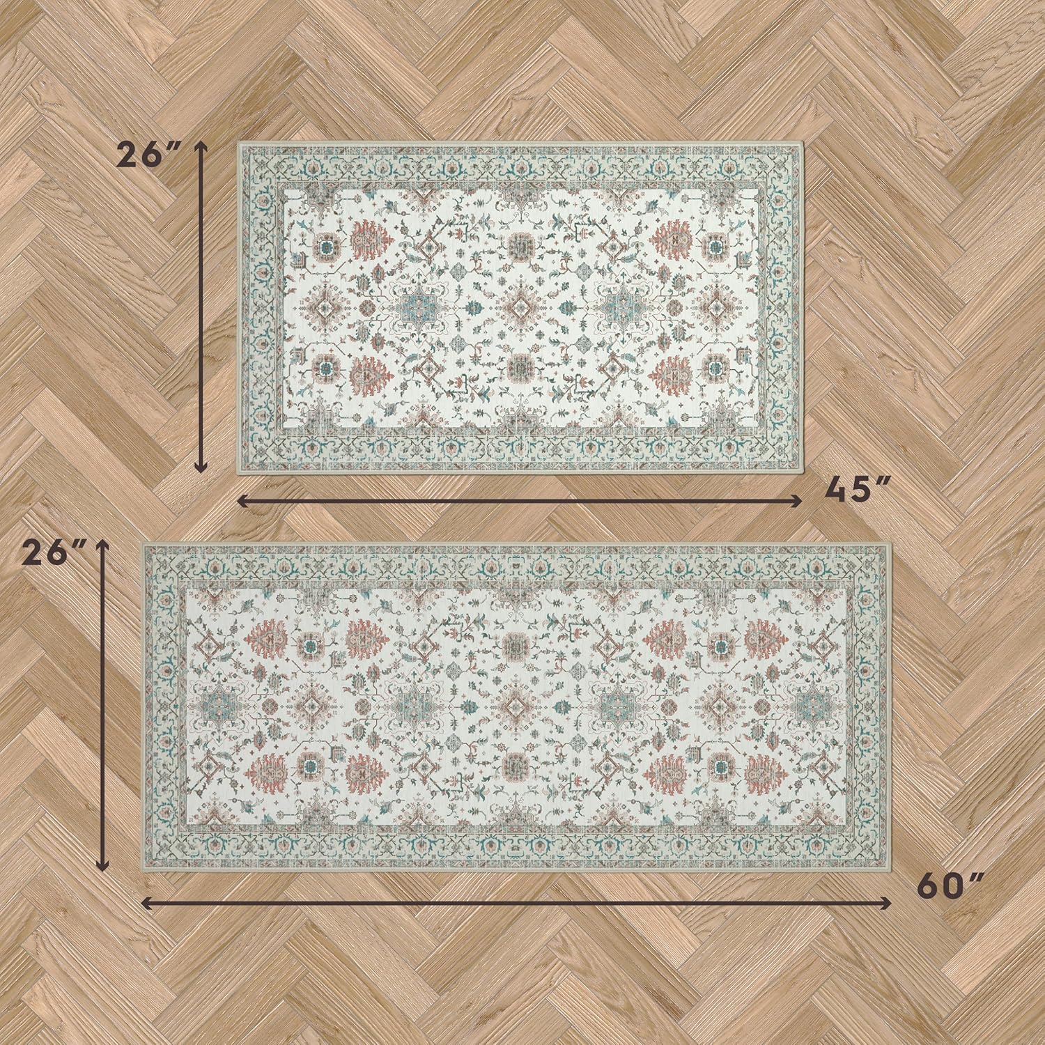 Laura Ashley ラグマット 2点セット/洗濯機で洗える・滑り止め付き