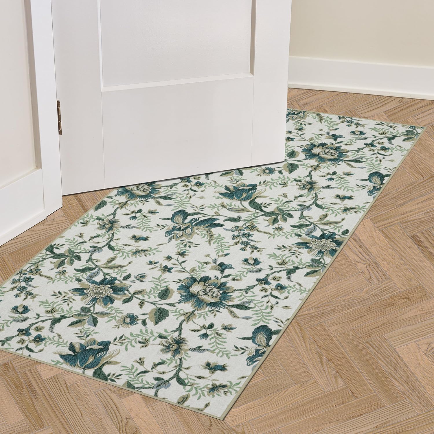 上品なフローラルデザインが空間を華やかに彩る、Laura Ashleyのラグ2点セット。