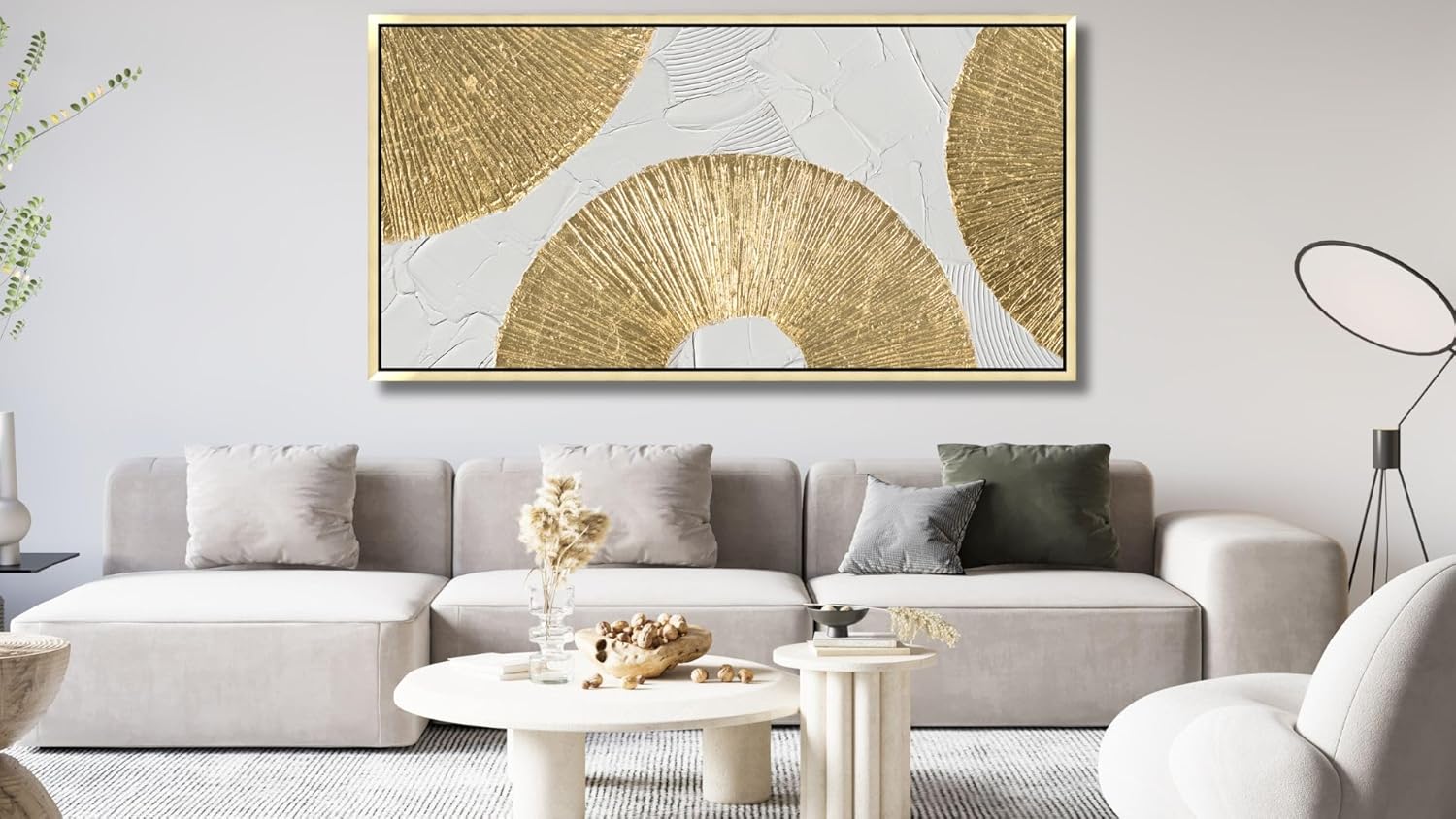 お部屋を一瞬で華やかに格上げする、ゴールドをアクセントにした抽象モダンアート。
