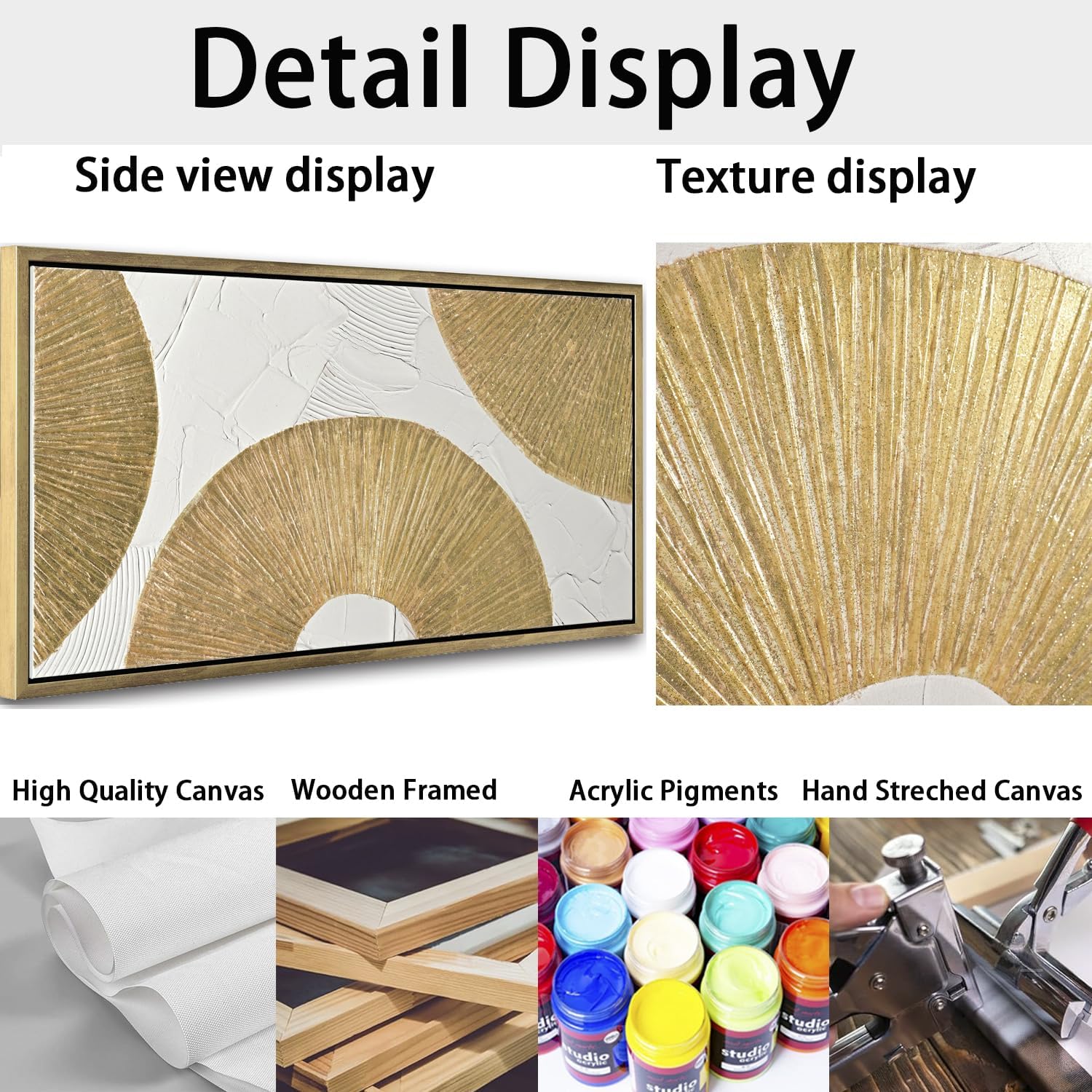 立体感のあるキャンバスアート(額縁付き)Gold and white2
