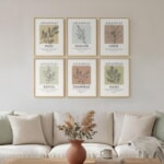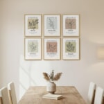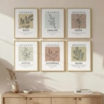 優しいニュートラルトーンと植物のラインアートが、寝室・リビング・オフィスに静かな温かさを添える6枚セットです。