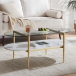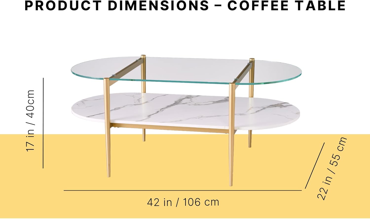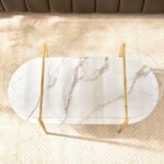 ミッドセンチュリーオーバルコーヒーテーブル /楕円/ホワイトマーブルウッド