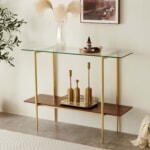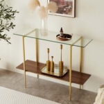 ミッドセンチュリーコンソールテーブル/クリアガラス×ウォルナッツ