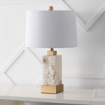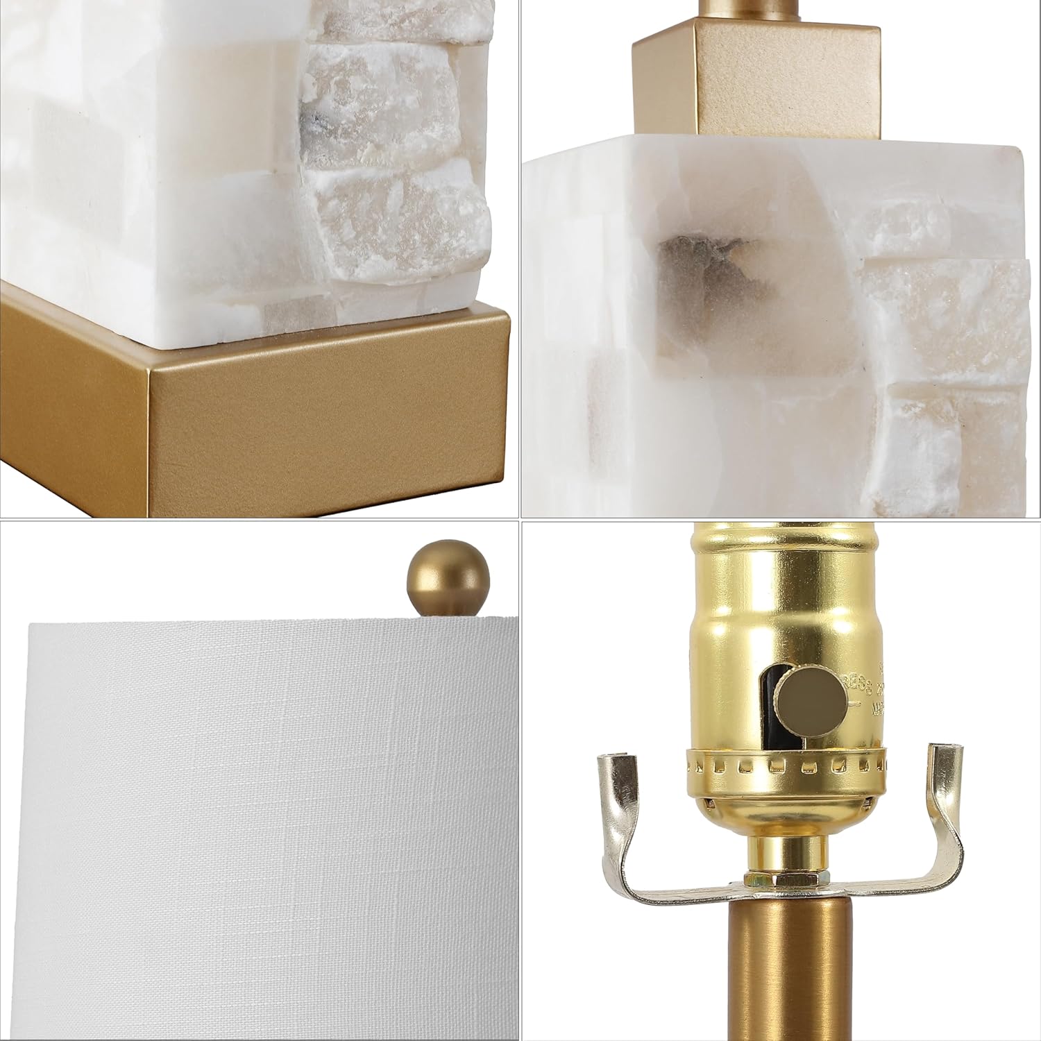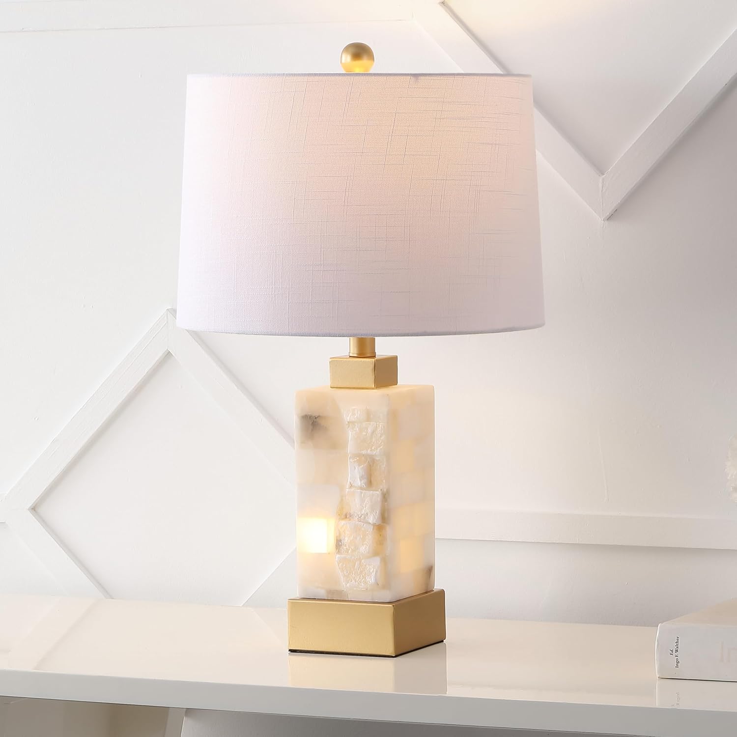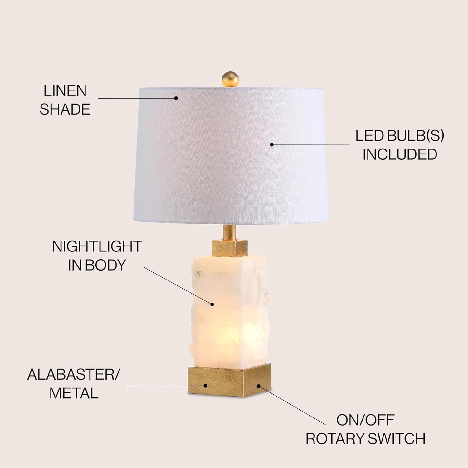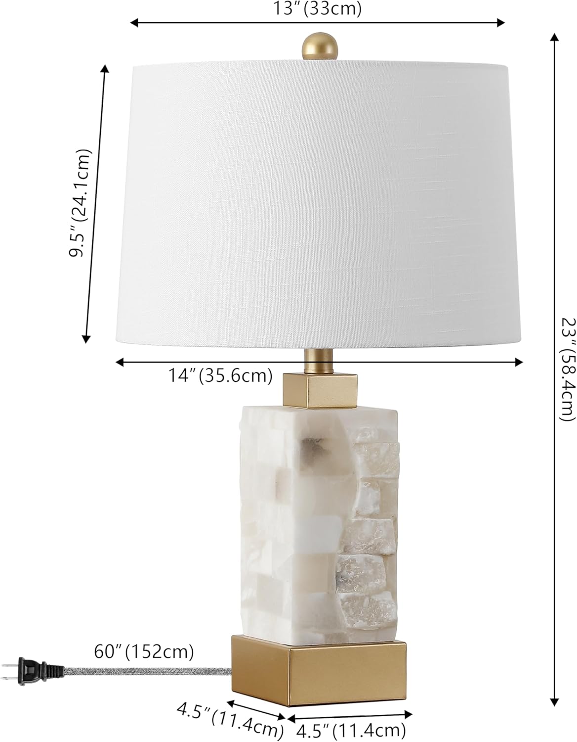 自然な美しさを感じさせるアラバスター(天然石)とゴールドの組み合わせが魅力の、JONATHAN Yテーブルランプ。洗練されたモダンデザインにコースタルグラムのエッセンスを加え、空間に上品で落ち着いた雰囲気を演出します。2灯仕様に加え、ベース部分にはナイトライト機能を搭載し、シーンに応じた柔らかな光を楽しめるのも特徴。100%コットンのハードバックドラムシェードが光をやさしく拡散し、リビングやベッドルーム、ナイトスタンドにも最適です。LED電球が付属しており、標準電球にも対応可能。ETL認証取得済みで120ボルトのUL安全基準を満たした安心設計です。ニューヨーク・ソーホー発のデザイナーブランドによる、細部までこだわった高品質な仕上がりで、日常の空間をワンランク上のインテリアへと引き上げます。
